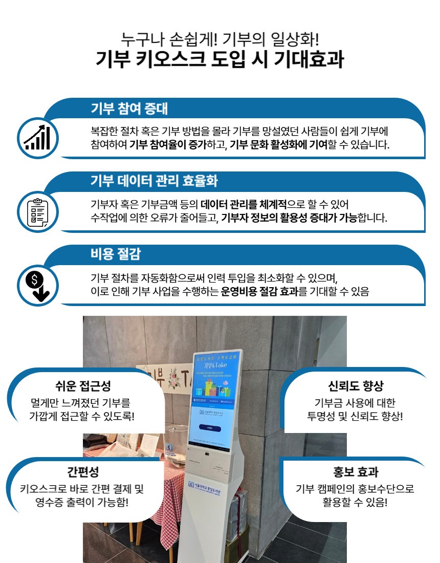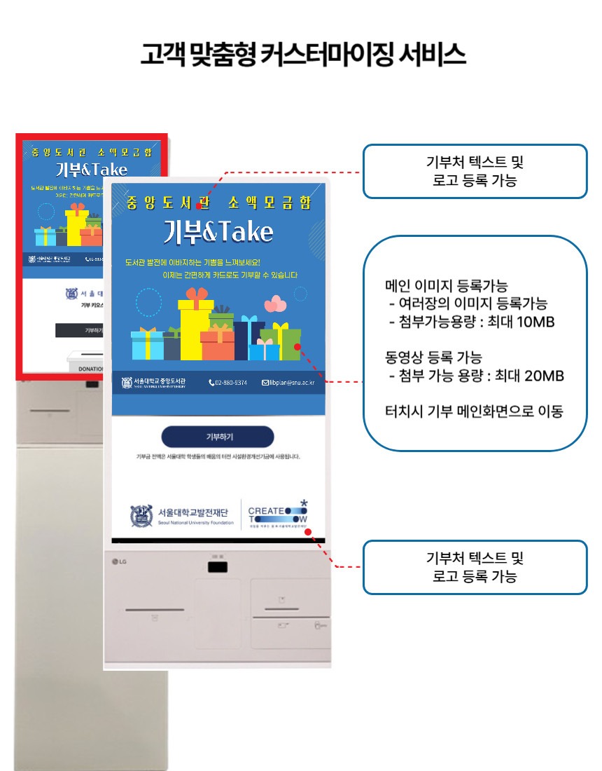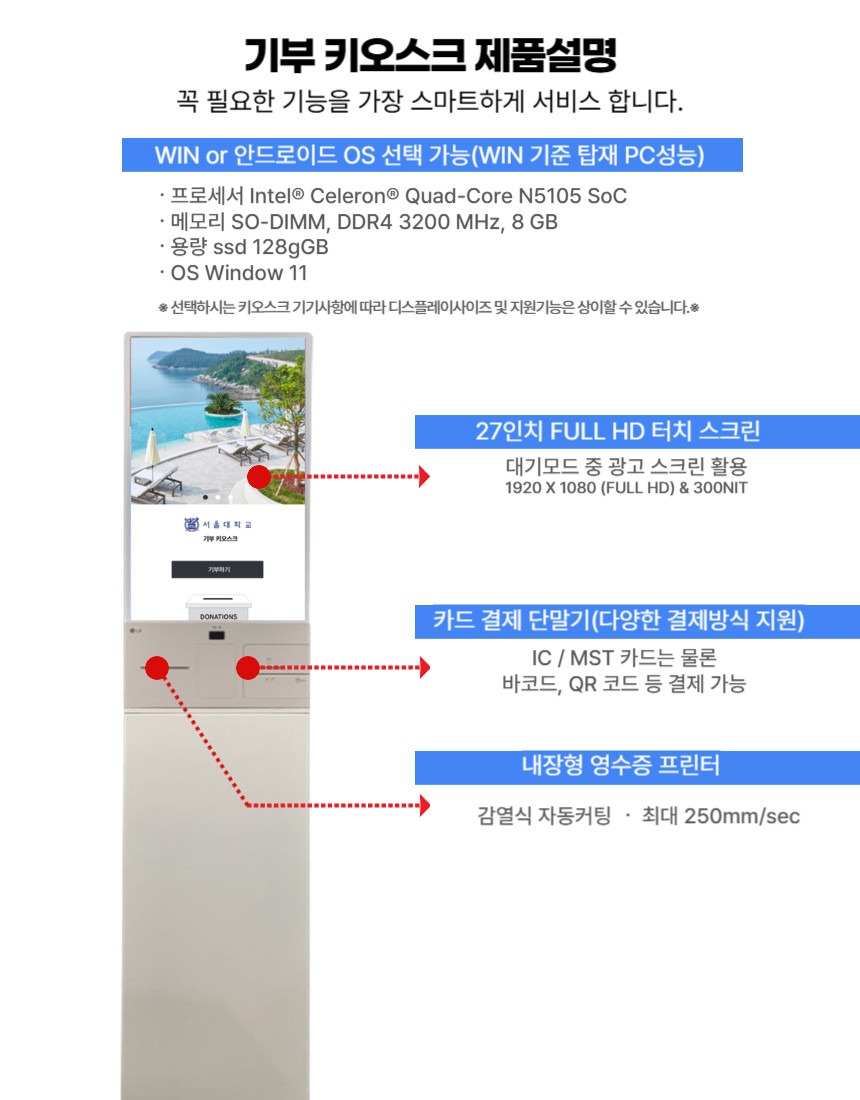 - HOME > 외식/유통/특수 키오스크 > 카드전용 KIOSK > 기부모금 키오스크 LG27 (기부 솔루션 포함)